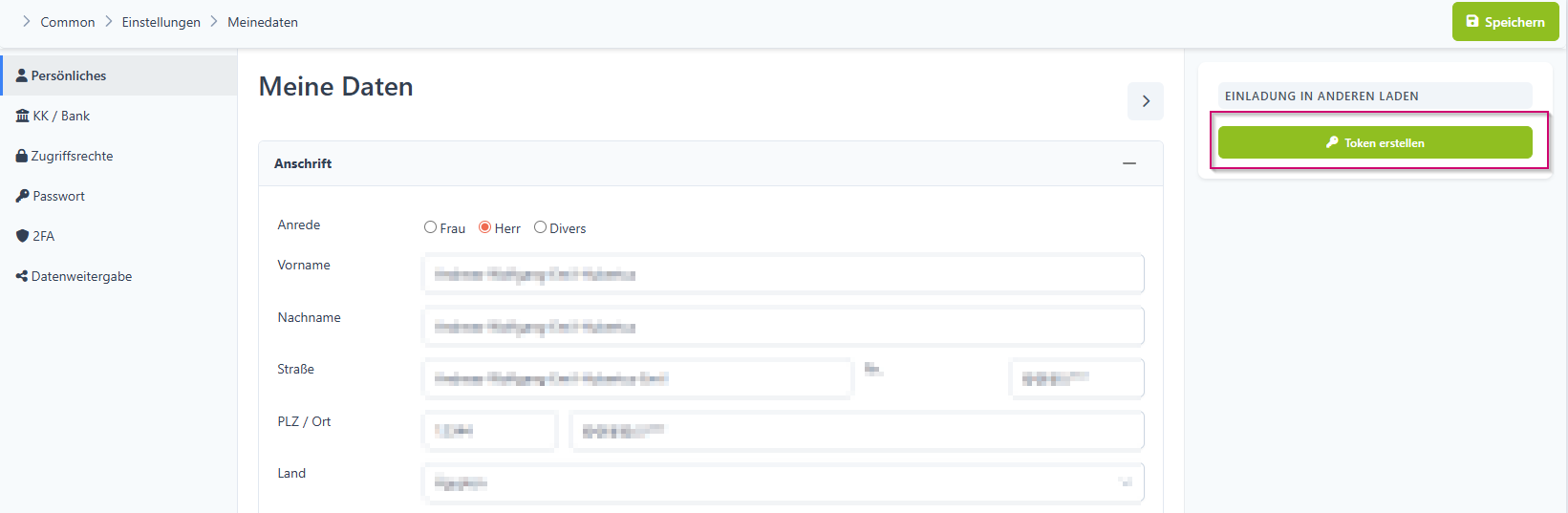 Egal, auf welchem Reiter sich der Mitarbeiter in "Meine Daten" befindet, oben rechts ist der Bereich Einladung in anderen Laden: