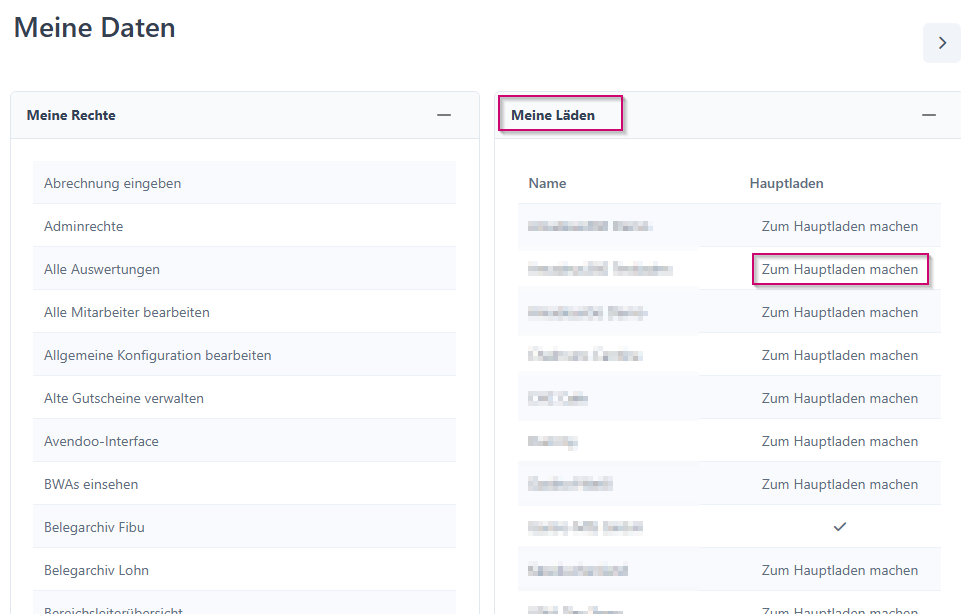 Bei deinem aktuellen Hauptladen ist ein Haken gesetzt. Möchtest du einen anderen Laden zum Hauptladen machen, gehe auf "Zum Hauptladen machen":