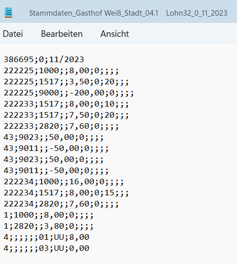 Die fünfte Zahl steht für die Stundenanzahl der Lohnart.