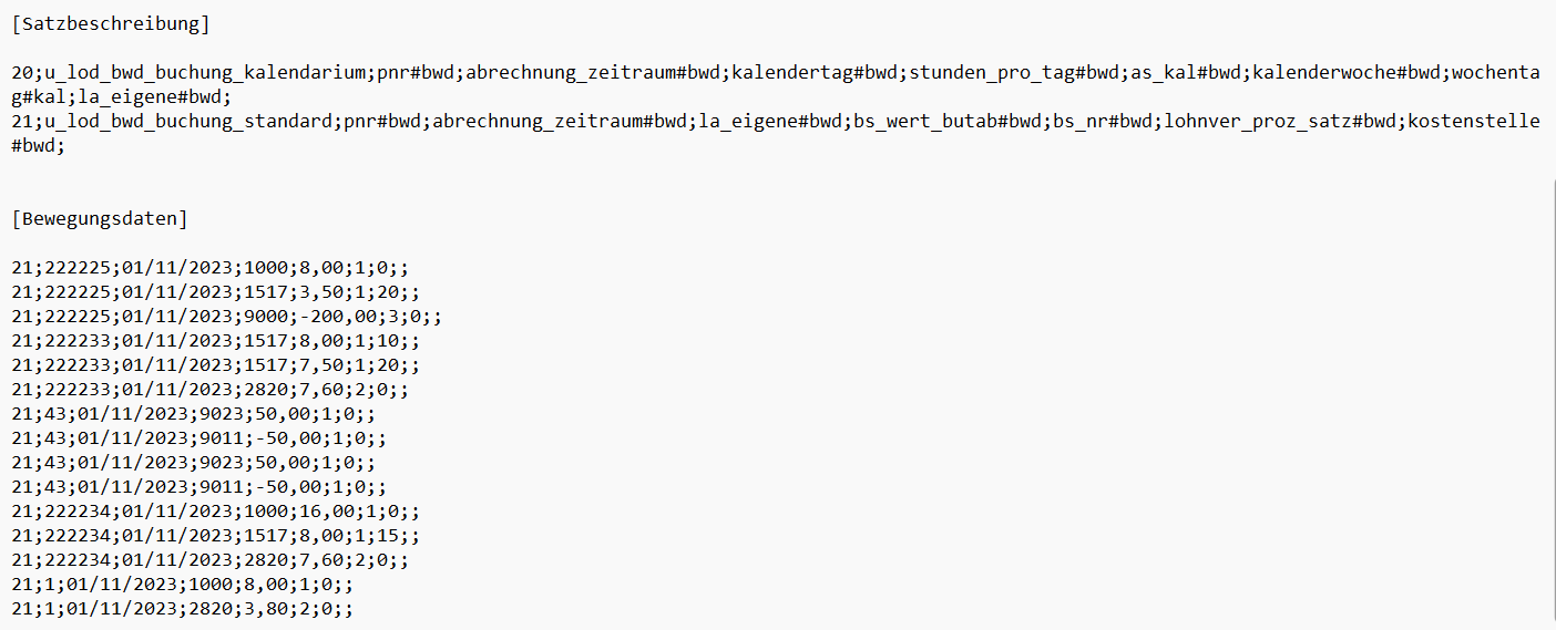 Die Bewegungsdaten sind alle in der Zeiterfassung erfassten Zeiten deiner Mitarbeiter, inklusive der Zuschläge und mehr.