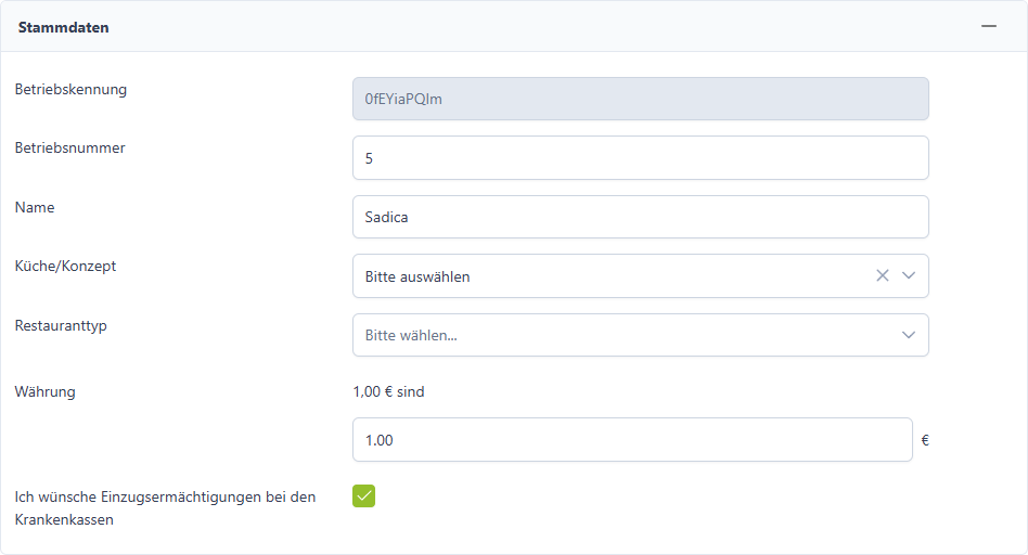 | Betriebsname | Hier kannst du den Betriebsnamen hinterlegen, der für die Rechnungsstellung verwendet werden soll. |