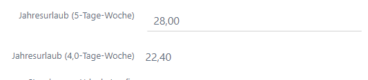 Danach aktualisierst du die Seite und erhältst den Wert, auf wie viele Urlaubstage dein Mitarbeiter bei seiner 4-Tage-Woche hat.