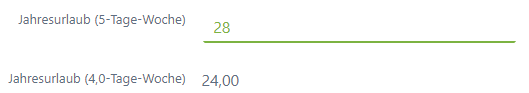 In diesem Beispiel hat der Mitarbeiter bei einer 5-Tage-Woche 28 Tage Urlaubsanspruch im Jahr.