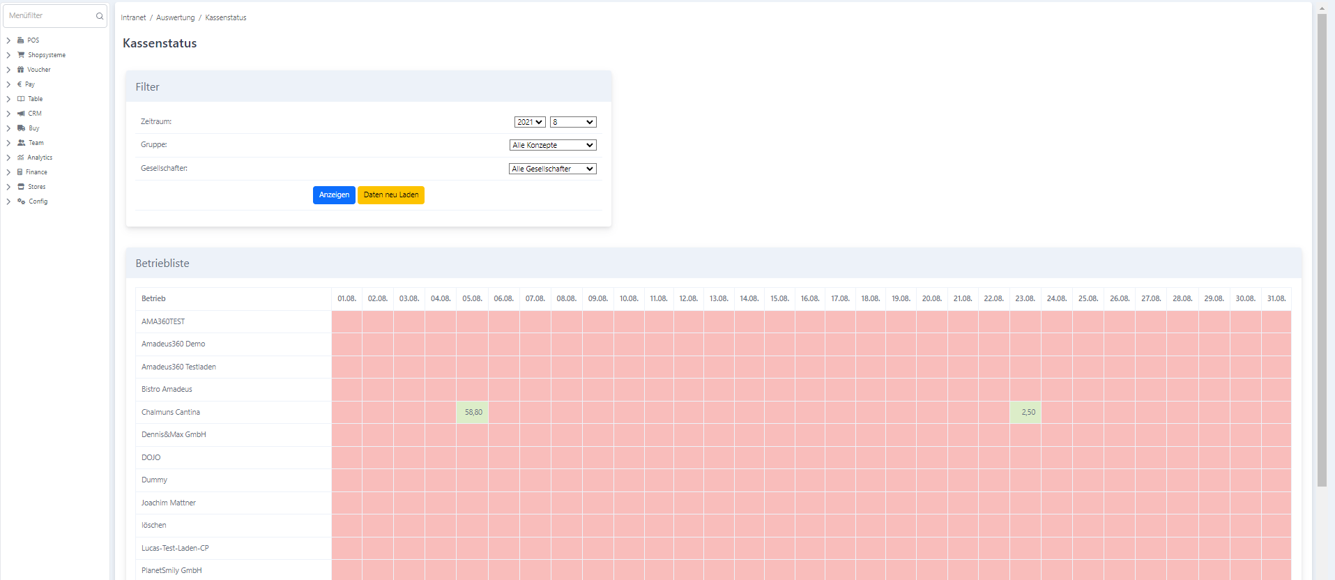 Bei Gesellschafter bestimmst du, ob nur die Stores eines bestimmten Gesellschafters angezeigt und die Kassendaten neu geladen werden.