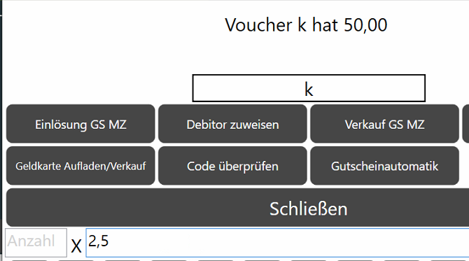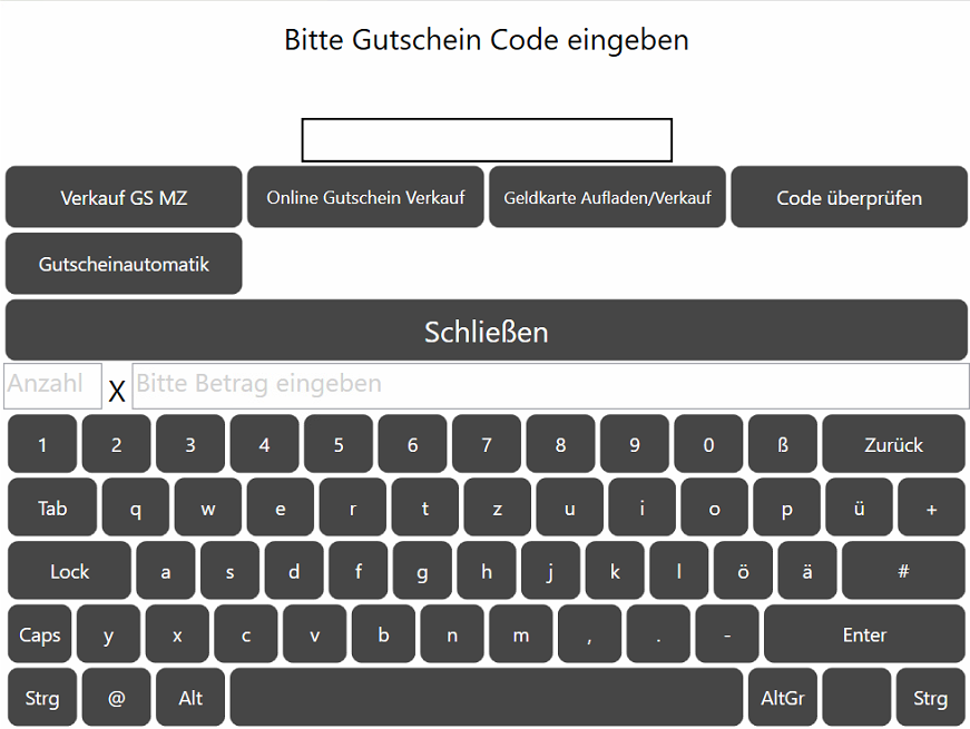 - Wird diese Taste dann auf der Standkasse aufgerufen, öffnet sich das Gutschein-Fenster.