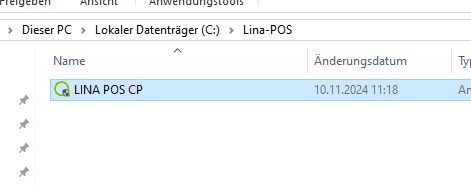 - Sobald die Kasse hochgefahren ist muss die Datei "LINA POS CP" im Ordner "Lina-POS" gestartet werden. Öffne hierzu auf dem Desktop" Dieser PC", dann "Lokaler Datenträger ( C:).