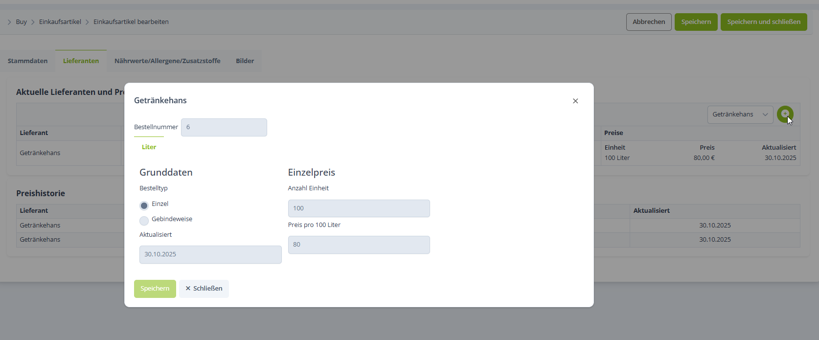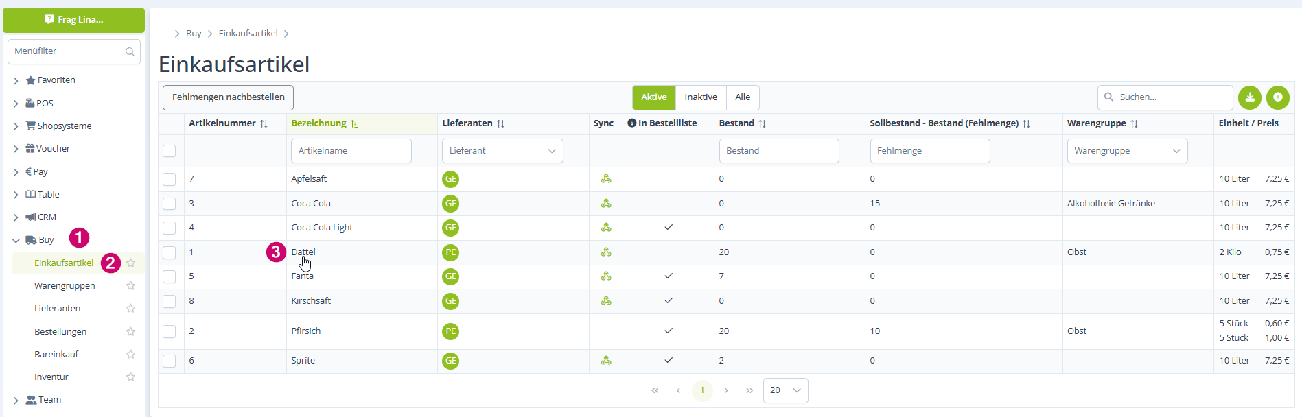 War der Upload erfolgreich, wechselst du in den Reiter "Einkaufsartikel" und wählst deinen angepassten Artikel aus: