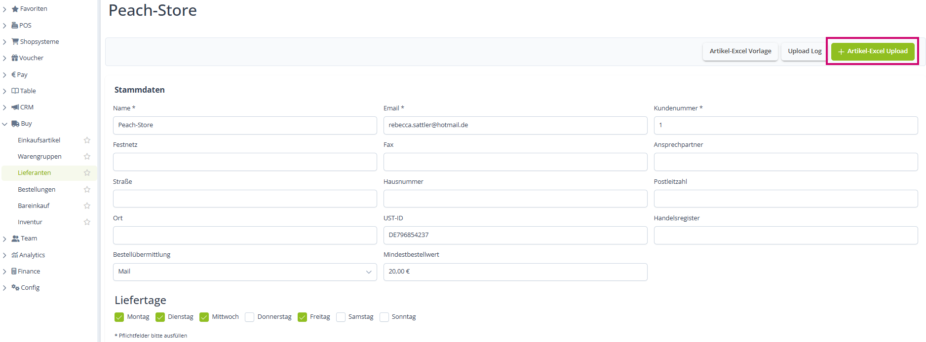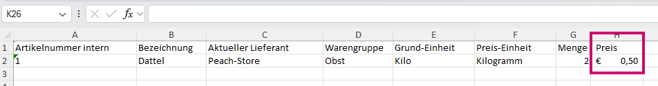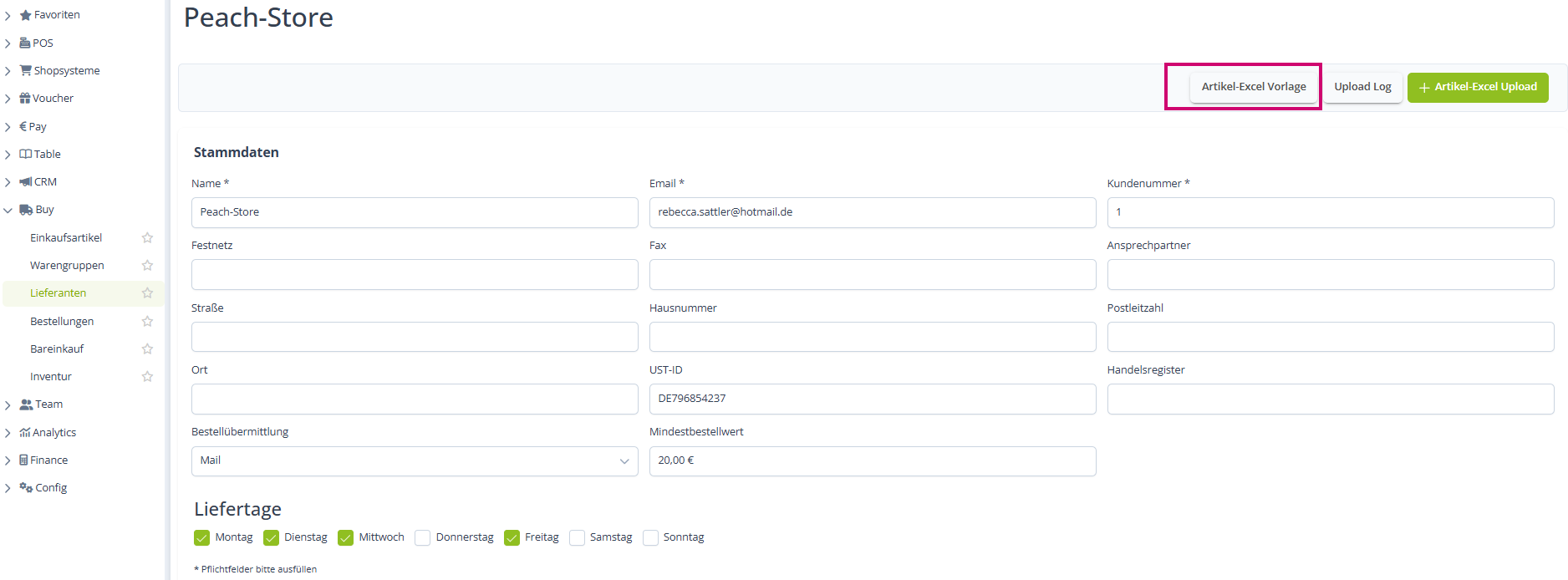 Im Lieferanten selber kannst du die Artikel-Excel Vorlage herunterladen und erhältst die Vorlage, die du ursprünglich beim Lieferanten hinterlegt hast: