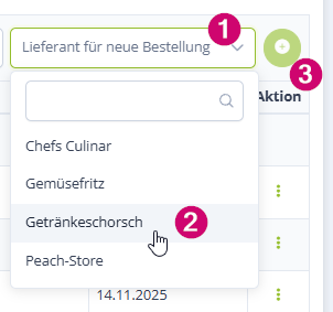 Wähle hierzu oben rechts zunächst den Lieferanten aus und gehe auf das grüne Plus: