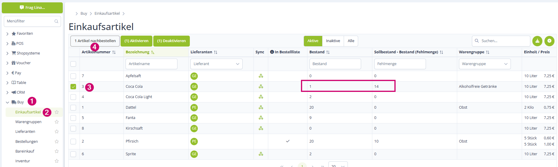 Um die Fehlmenge nun nachzubestellen, wechselst du in