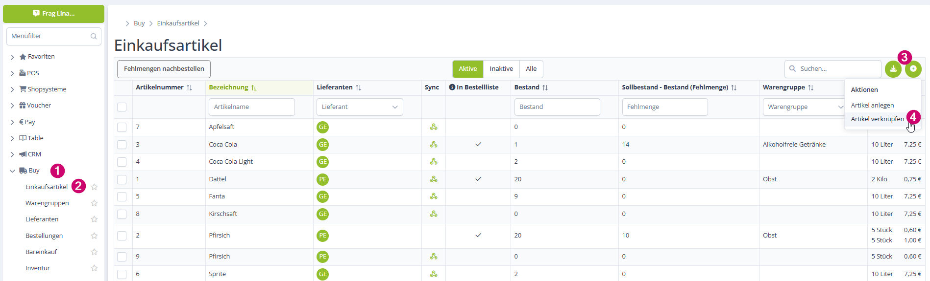 - Artikel den Lieferanten zugeordnet sein