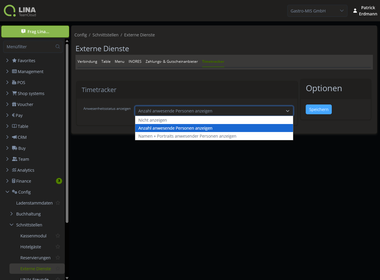 Bitte beachte, dass dir nur Mitarbeiter als abwesend angezeigt werden, wenn sie am aktuellen Tag eine Schicht laut Dienstplan haben. Soll in der PIN-Maske der Status der Mitarbeitenden nicht angezeigt werden, kann diese Funktion in den Einstellungen (Config/Schnittstellen/Externe Dienste) deaktiviert werden: